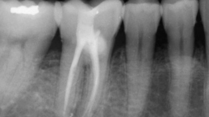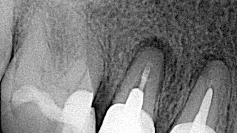 Necrosis pulpar en diente 45 con bifurcación en el tercio medio del conducto Caso clínico del doctor Francisco…